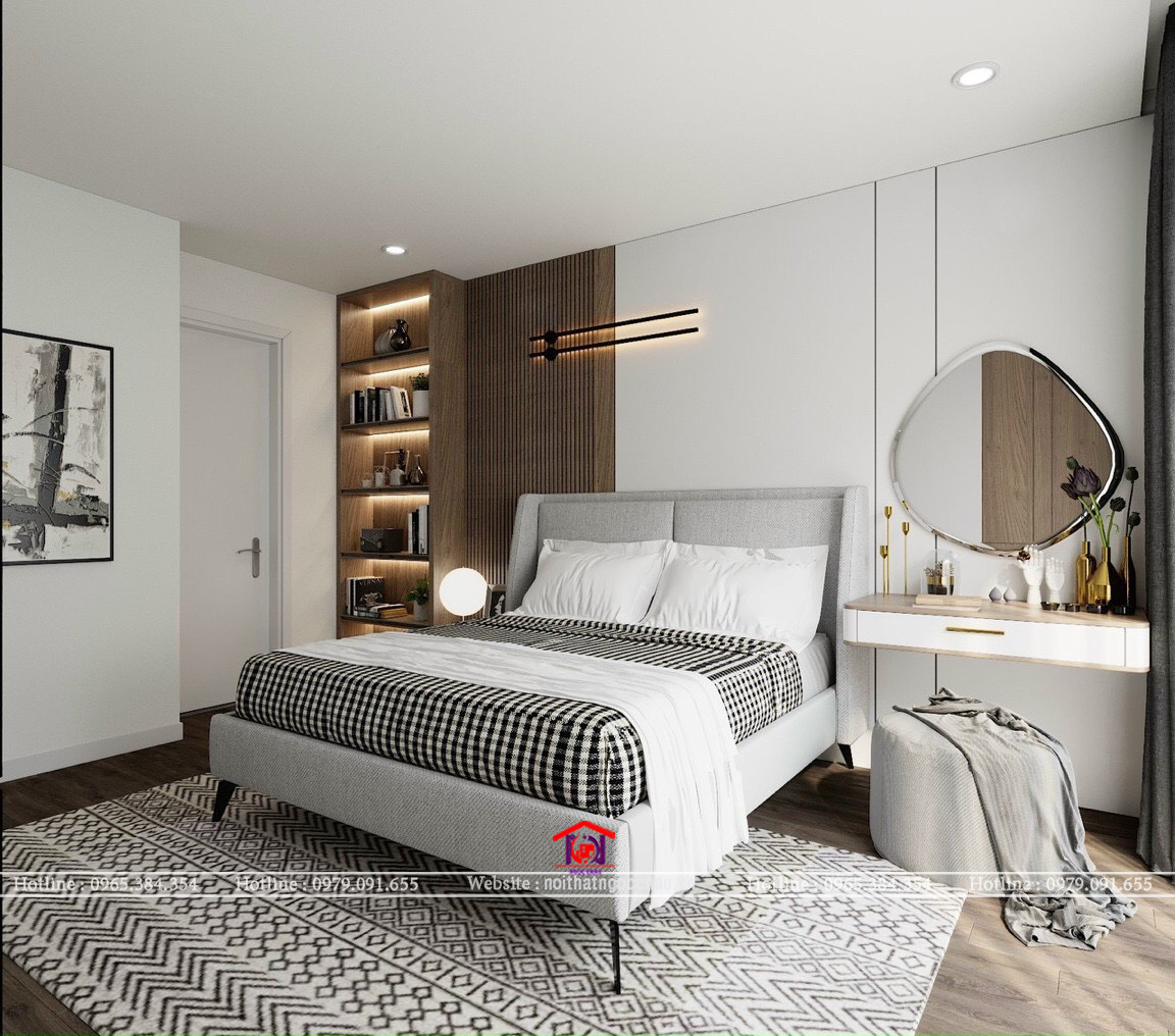 - Tối ưu công năng: Kết hợp tủ quần áo phòng ngủ thông minh, kệ trang trí đa năng, và hệ thống đèn LED tiết kiệm điện, mang đến sự tiện lợi tối đa.