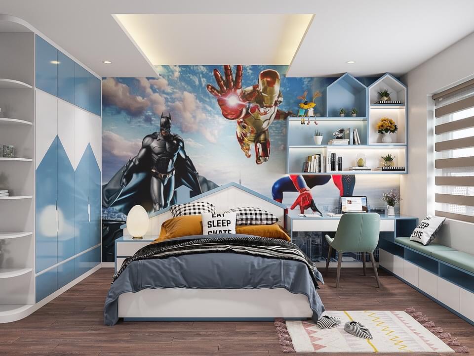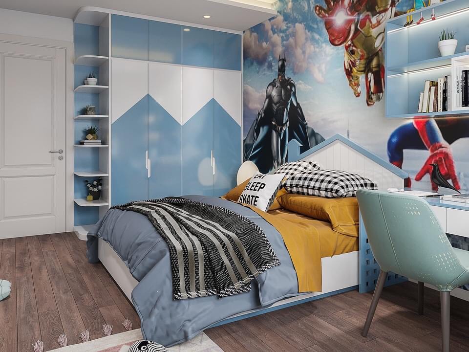 - Phong cách sáng tạo: Trang trí phòng bé với hình ảnh hoạt hình, màu sắc tươi sáng hoặc chủ đề thiên nhiên, kích thích trí sáng tạo và tư duy.