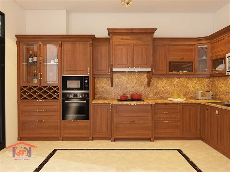 Lựa chọn nguyên liệu cho bộ tủ bếp không thể thiếu nguyên liệu gỗ Gõ, đây là dòng gỗ tự nhiên có độ bền cao chắc chắn, có khả năng chịu lực, thích ứng với điều kiện thời tiết của Việt Nam và mang lại tính thẩm mĩ cao, sang trọng, lịch sự. Bộ tủ bếp gỗ Gõ của Nội thất Ngọc Châu được thiết kế nhấn mạnh vào công năng sử dụng hằng ngày nhưng vẫn bảo đảm tính thẩm mỹ.